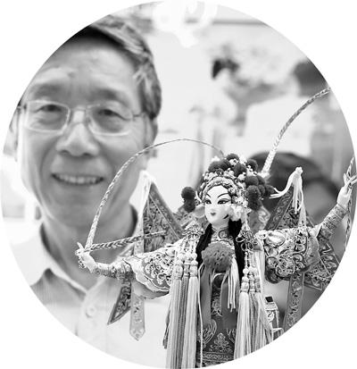 图为非物质文化遗产大师滑树林在“北京文化庙会·台北之旅”活动现场展示绢人作品。