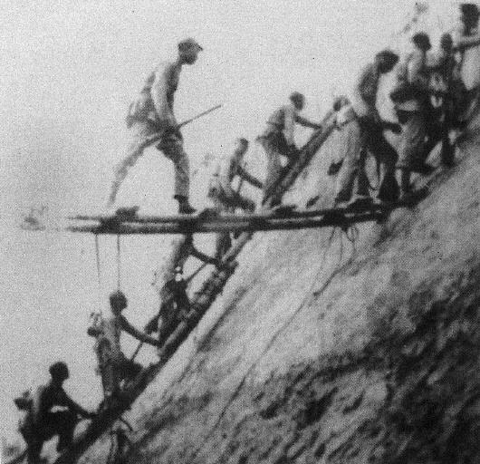 1944年,战士们在利津攻坚战中攻上城墙。 (资料片)