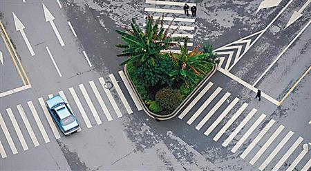 如此奇葩斑马线,行人到底该咋走?近日,在湖南郴州市一处十字交叉路口,三条奇葩的斑马线吸引了路人关注。在该交叉路口中间矗立着一个绿化花坛,恰巧落在三条斑马线的交点上,当地市民称,经过斑马线后没地方落脚,要么绕行,要么有“轻功”飞过,既不方便也不安全。