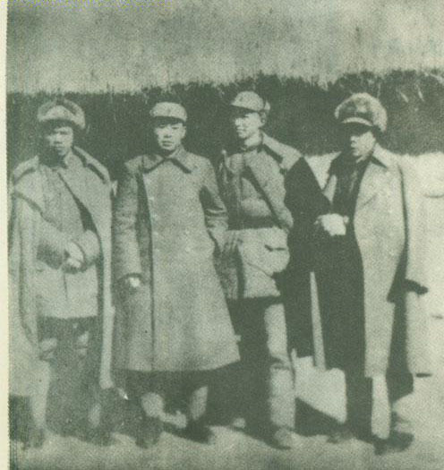 抗战期间,刘震(左二)和金明(左一)、李一氓 (左四)