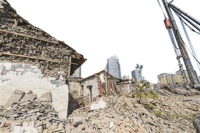 老宅东侧一个高大的打桩机正在不停地运转,宅子的西侧一进只剩下瓦砾砖块、残垣断壁。