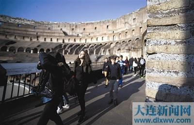 两美游客在罗马斗兽场墙上刻字被抓(图)