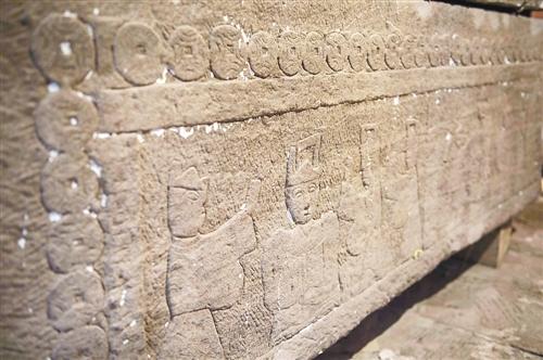 汉代石棺上的浮雕清晰可见。 记者 崔力 摄