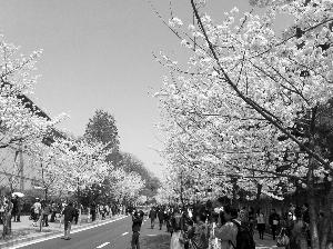 2006年春天,在为考研还是工作纠结时,他跟父母走到鸡鸣寺路,一路谈心。“这时的鸡鸣寺樱花还是小树苗,这条小路也只是附近居民上下班经过的一条路而已,樱花静静地开着,来往行人匆匆而过,少有驻足者。”