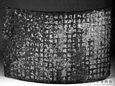 图为唐代“丹书铁券”(局部),它是赐给五代十国时吴越国建立者钱镠的。这是目前中国保存下来的唯一的唐代铁券实物。