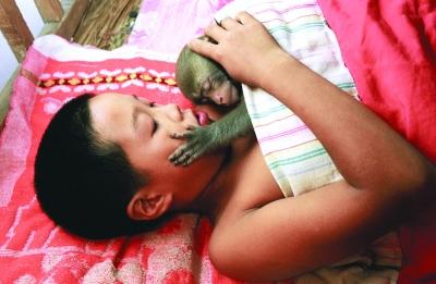 黄爱青的儿子和家里的猴子成了好朋友