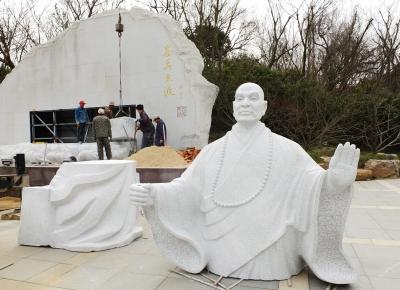 鉴真东渡群雕像换麻石“真身” 再长高20多厘米