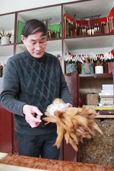 “原来狼毫的主要材料是黄鼠狼、獾尾巴上的毛,但是这些原料越来越难得,我们就把狗毛、貉子毛、马盖毛等也利用起来,减少对特种动物的极度依赖,避免造成生态灾难,同时也防止因缺少材料导致无米下锅。”