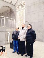 春风似剪柳如丝,情系晋绥寄哀思。4月1日下午,阴天,大风中,晋绥后代林炎志、续大田、苏斌等27人抵达兴县,来到位于蔡家崖的晋绥边区革命纪念馆,在纪念馆大厅里向贺龙元帅的雕像敬献花篮并参观纪念馆,重温烽火岁月父辈的革命历程。实物、图片、模拟场景、雕塑等,展示出波澜壮阔的战争年代,父辈同日军所进行的不屈不挠的英勇斗争,让晋绥后代们心潮起伏,思绪万千,纷纷在父亲的雕塑、图片、名字前留影。晋绥文化教育发展基金会秘书长段晓飞吩咐摄影记者拍下柜内展示的龚逢春、姜宝箴夫妇使用过的毛毯,说回去让94岁的姜阿姨看看照片。参观完纪念馆,大家在前往晋绥军区司令部旧址的路上,在一通汉白玉石碑前驻足。段晓飞向记者介绍:石碑上父亲段云所书《续范亭诗赠贺龙将军》的诗,是续将军为贺老总所写,作于抗战初期,这幅字在贺龙家的客厅挂了35年,2011年5月,经山西省委宣传部批准,将这幅饱含着时代印记的作品,镌刻成碑。当年6月9日在兴县开工,那一天恰是贺龙祭日,8月1日竣工。这通汉白玉石碑昂然矗立于的晋绥边区革命纪念馆院内,默默地述说着父辈们的一段深情。林炎志、续大田、段晓飞三位晋绥后代在碑前深情合影,寄托对老一辈深深的缅怀之情。