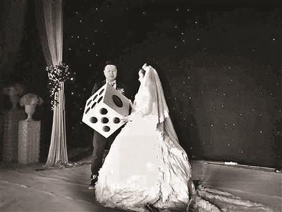 没有婚戒,新郎抱着硕大的骰子送给新娘,宾客抱着“红中”、“发财”和“白板”登台送祝福,新娘说“遇见你,是我这辈子打得最好的一手牌”。原来婚礼主角——李先生和杨小姐都生在“麻将世家”,且因牌局结识,“牌品看人品,我们俩就看对眼了。”于是两人决定将婚礼办成麻将party!
