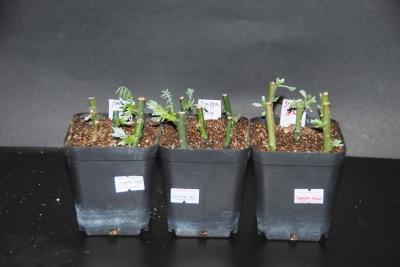 扦插的唐槐嫩枝开始生根