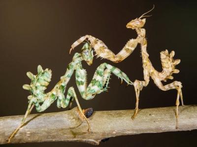 摄影师拍摄到棕色螳螂和绿色螳螂相遇照片(图)