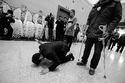 溥任的学生磕头送别 摄/法制晚报记者 林晖