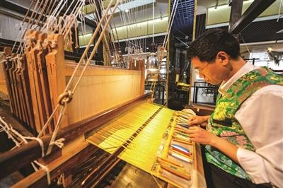 新馆搬来了十多台织锦机