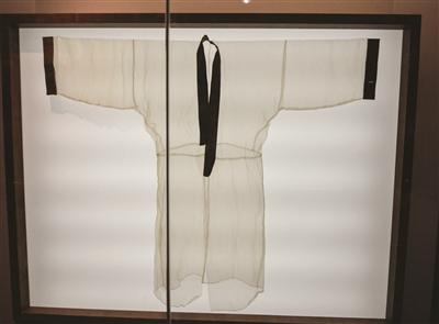 昨天,整个展览中最吸引人注意的当属马王堆汉墓国宝级文物素纱襌衣的复制品。1972年在长沙马王堆汉墓发掘出的这件文物,被视为西汉时期纺织技术巅峰时期的作品,为西汉长沙国丞相夫人辛追(马王堆出土的“美人”)所穿。