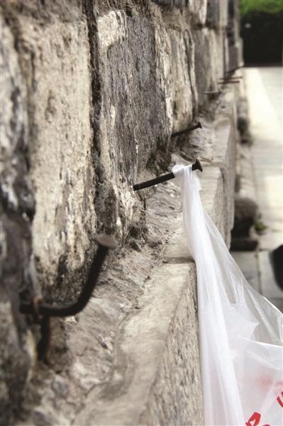 南京明故宫西安门城墙被钉钉子 广场舞者用来挂包