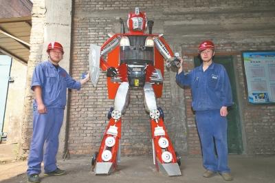 本报讯左手握“枪”,右手持盾,背后还长着一对双翼。昨日上午,在中国一拖的厂房里,记者见到了这台身高2.6米的“擎天柱”(如上图)。