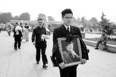 汪国真儿子手捧父亲遗像 摄/法制晚报记者 黑克