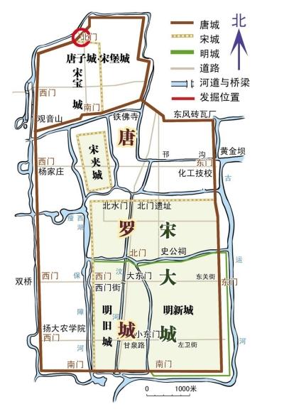 从建城历史时长来看:公元前486年“吴城邗,沟通江淮”,到今年整整2500年。在这2500年间,从夫差建邗城,到7世纪初唐扬州城延展至蜀冈之下,扬州城有1100多年时间雄踞于蜀冈之上;自唐初蜀冈下罗城出现到元代宋堡城被毁的13世纪末,有近700年时间,扬州城的核心区域(官衙所在地)仍在蜀冈上。也就是说,蜀冈上的扬州城池,作为扬州城的发祥地和核心,在时间上占了2500年的70%以上。