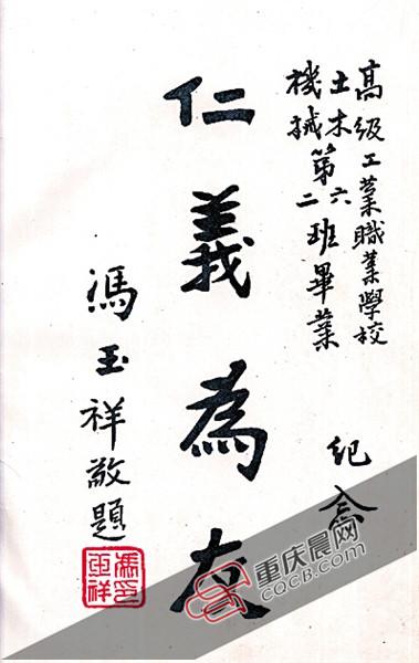1936年,冯玉祥为《重庆高级工业职业学校土木第六班、机械第二班同学录》题词。