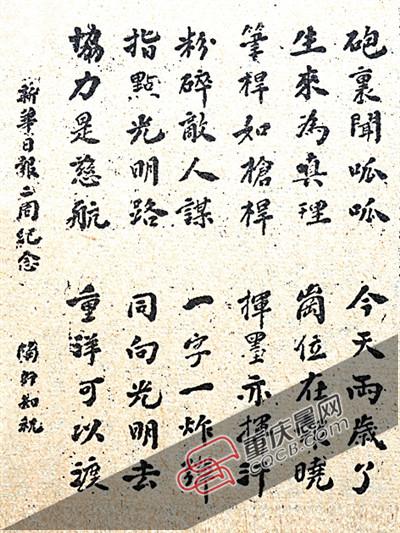 “在部分手迹的基础上进行补充,对重庆市档案馆的珍贵馆藏再次进行精选,”唐润明介绍,最后选出了208位、400余幅名人题词和信札,“很多图片、真迹是首次公开。”