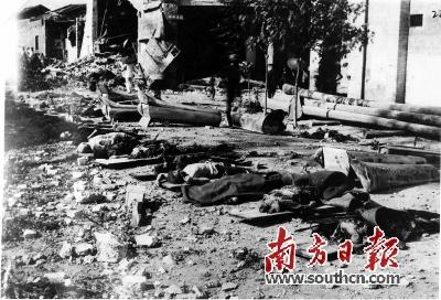 1937年12月,日机对韶关城区狂轰滥炸,许多市民在街市被无辜炸死。广东省档案馆提供