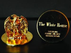 美国《华盛顿邮报》8日报道,白宫多数被顺走的物件倒不太值钱,例如盥洗室印有总统印章的毛绒毛巾、白宫为一些大型宴会从外面租来的便宜汤匙。当然,也有些较值钱,像镀金的鹰状席次牌、小的银汤匙或是女盥洗室壁灯上的雕花玻璃饰品。