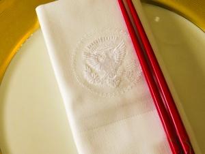 有白宫标识的餐巾