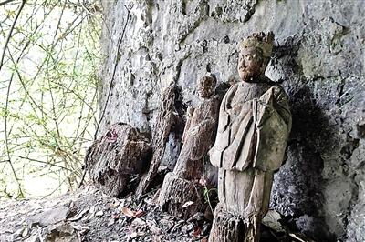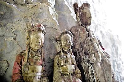 12座清代木制雕像藏身绝壁石缝 镀金基本脱落(图)