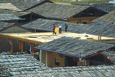 传统的修建方法力争做到恢复原貌。在大伙共同的努力下,古城也一点点地恢复起当年的模样。