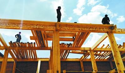 扎西带着几位工友忙着在搭好的框架上铺设木板,整体框架已初具雏形,“我们要按要求恢复原貌,所以使用的材料和施工方法都是按照传统的藏式要求,要修旧如旧,一点马虎不得。”随着一阵电锯声,木屑像雪花般飘落了下来。