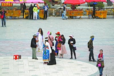 ▲虽然选择在这里深度游的游客还不多,但香格里拉的名气还是让不少游客选择在这里停留观光。