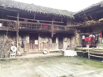 老宅是四合院的布局,有两个天井,大门的位置在老屋右侧。顺着大家的指引,记者看到,在老屋前的地上,用青石条砌出了一个篮球场大小的平坝。居民们说,这里就是以前宅院的大天井。以此反推,足可想象繁荣时期这座宅院的规模。