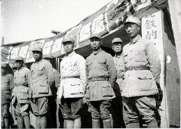 1940年晋东南阅兵大会主席台上的八路军诸将领,彭德怀(前排左三)、左权(前排右二)、刘伯承(后排右一)、聂荣臻(前排右一)