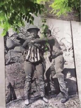 ■ 古城一家商店外墙上挂着的敢死队出征照片