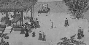 ■明人所绘《朱瞻基行乐图卷》(部分)。画中有不少明朝太监形象。在明代,太监是最突出的裸官。