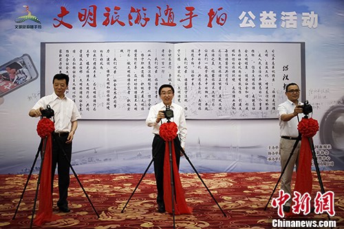 中新网北京6月16日电(宋宇晟) 今日,由国家旅游局、中国新闻社共同主办的“文明旅游随手拍”公益活动启动仪式在北京举行。国家旅游局党组成员、副局长吴文学,中国新闻社副总编辑刘小青,中央国家机关摄影协会副主席宋建朝等出席启动仪式。吴文学在启动仪式中表示,国人出境游“还没有解决‘有钱就任性’的问题”。
