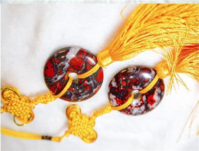 据中国地质大学珠宝学院杨院长介绍,神农架鸡血梅花玉的鸡血红色致色原因是矿石中铁离子浸染于矿石晶体中显示而成。其血色形态由其所含铁离子含量、分布状态决定,铁离子含量越高,血色越红。血的形态越大,越浓,越尊贵。