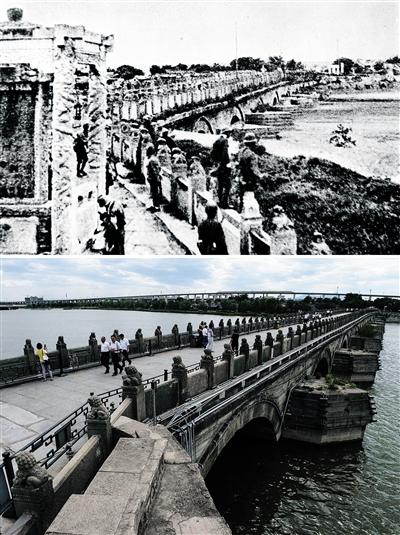 日本侵略军占领下的卢沟桥(资料照片)。 新华社发