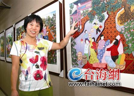 她就是刘丽萍,今年48岁,翔安马巷人。“我从小就看农民画长大的。”刘丽萍自豪地说,父亲喜欢画画,尤其擅长画农民画。丽萍自幼就对画画有浓厚的兴趣,十多岁时就跟着父亲学习画农民画。每次创作完一幅作品,父亲总是要“专门挑毛病”。即便如此,丽萍仍然很开心,因为她发现父亲的“批评”总是很到位。每次按照父亲指点改完后,作品总是进步不少。“只要让我画画,我就开心。”丽萍说,长辈们的生活场景给她留下了深刻的印象,因此在创作时,她不由自主就将这些画面一一再现。作品《编织梦想》就是从妈妈编竹篮的情景获得的灵感,而《端午粽飘香》则是取材于奶奶包粽子的场景。“画上的大柜子,就是我奶奶一直用的。”她希望通过这样的方式,将长辈们对美好生活的向往展示出来。