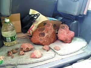 “每天爆破,每天都有人来,有的人手里有刀,我们什么都不敢做。”刘强说,这样的情形,过去一个多月时间里,每天都在发生,“最多的时候,有人开车整车运走那些化石,都不知道到现在有多少颗被拿走。”