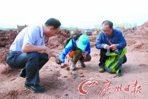 7月29日,听说了恐龙蛋化石遭到哄抢的消息后,中国科学院古脊椎动物与古人类研究所一个5人的调研组专程从北京赶到河源,杜衍礼带着调研组走了一圈工地。