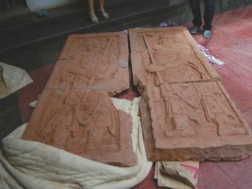 嫌疑人刘某某交代,由于墓门太重,无法整块运输,他们便将两块墓门均敲成3段,然后抬到停放在不远处的摩托车上运走。两块墓门雕刻精美,最终以1万元的价格,卖给了龙泉一家石刻收藏店。