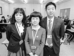 来自南京的李爱云(音)老师(中)、来自西安的自然科学老师杨君 (音)(左)以及来自杭州的数学老师邹海连(音)