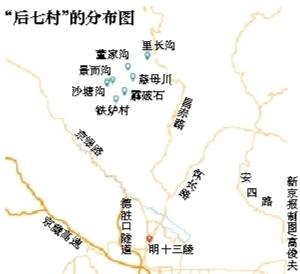 所谓平北,指的是北京以北,张家口以东,承德以西的三角地区,处于满洲、蒙疆、华北三个伪政权的接合部,战略位置很重要;而“后七村”指的则是明十三陵后山的7个村子,分别是铁炉村、沙塘沟、景而沟、霹破石、慈母川、董家沟、里长沟,分布形如北斗七星,是八路军在平北最先站稳脚跟的地方。