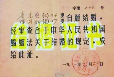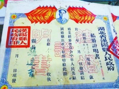 肖琴学的分析从他收藏的解放后的结婚证得到一定程度印证。肖琴学收藏了一张汉阳县人民政府于1953年发出的结婚证,这是由政府统一印刷的结婚证,外形看上去像奖状,为格式文本,有政府的统一结婚编号,结婚证上没有结婚人、证婚人、介绍人、主婚人等,只有汉阳县县长的印鉴。到了1981年,结婚证则更简单,一张武昌区发出的结婚证就是一张纸片,上面写明结婚证编号和夫妻双方姓名年龄,与现在的婚书不同,没有夫妻照片。