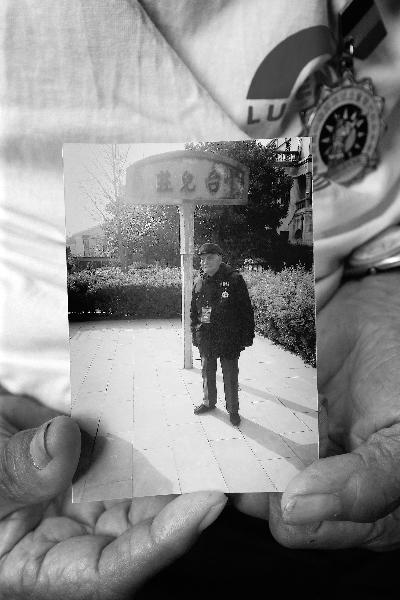 今年4月,老人重返台儿庄,并拍照留念 摄/法制晚报记者 吴海浪
