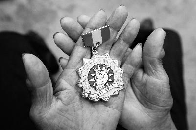 邵经斗将一枚抗战纪念章视若珍宝 摄/法制晚报记者 吴海浪