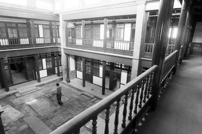 步入楼中,透亮的天井、朱红的柱子、宽敞的庭院……也都是过去的老样子。施工人员介绍说,为了保证修旧如旧,他们在修缮时查阅了很多历史资料。