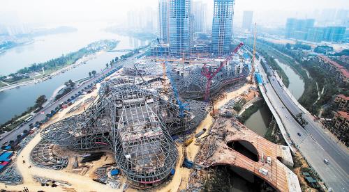 昨日,梅溪湖国际文化艺术中心三大主体钢结构“芙蓉花瓣”造型初现,即将启动外立面幕墙施工。长沙晚报记者 石祯专 摄